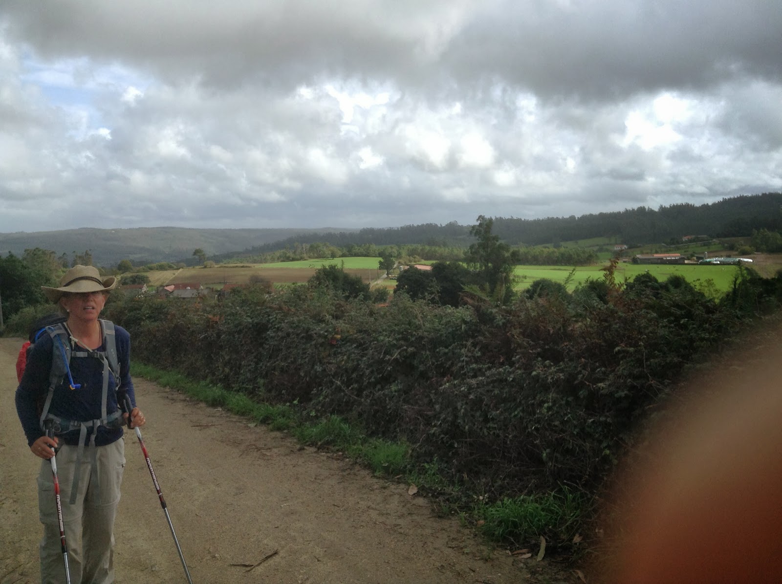 After a few words of "thanks for the hospitality" and "late October is not the time to come here" from the host, thank you very much, we trudged though the town streets decked out once again for the possibility of rain. Buen Camino. There would be none. We followed the familiar yellow arrows on what would be another 14k, up and out of town into a lovely trail that stretched up through the cloud cover and into the humid sunshine with the promise of drying things out. I was now excited! I'm doing this! I can do this! I'm going all the way! I knew that if I trusted what was happening to us yesterday was only temporary, we would be promised something good. Sort of like the old saying that just beyond the suffering is the blessing. Hang in there, better times are coming.